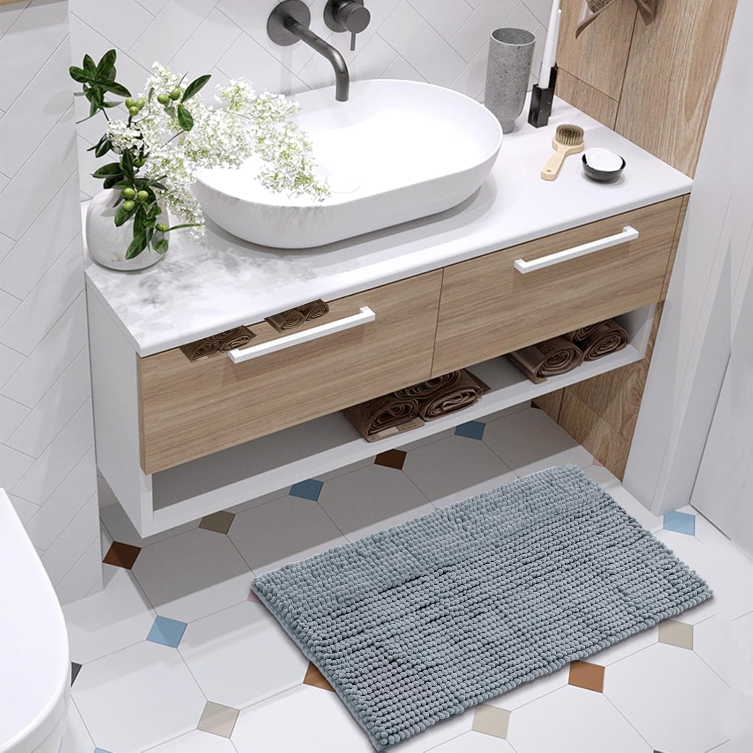**FRESHMINT Chenille Bathroom Rug, Sky Gray – 24″x17″**